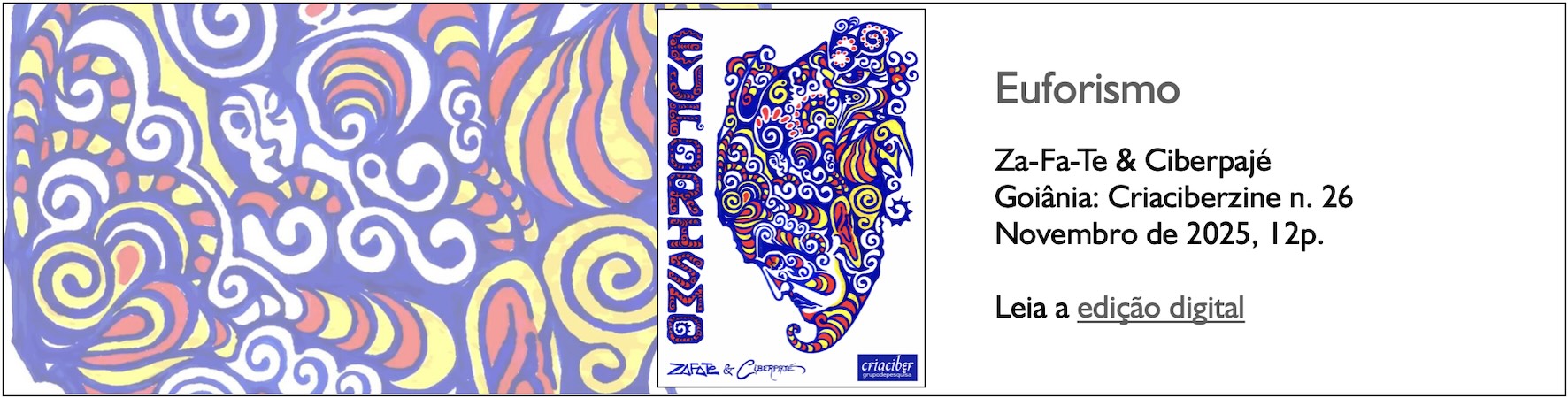 Os Cria_ciberzines são uma produção dos integrantes do grupo de pesquisa Criação e Ciberarte (CRIA_CIBER), liderado pelo professor-pesquisador e artista transmídia Edgar Franco (@ciberpaje), com edição de Gazy Andraus e Léo Pimentel. Coord. geral do Ciberpajelanças: Edgar Franco (Ciberpajé). Inserção e montagem dos zines para a Marca de Fantasia em pdf por G. Andraus. Link ao Instagram do CRIA_CIBER (Cria_ciberzines), a cargo de Ícaro Malveira (e criaciberes): https://www.instagram.com/cria_ciber/