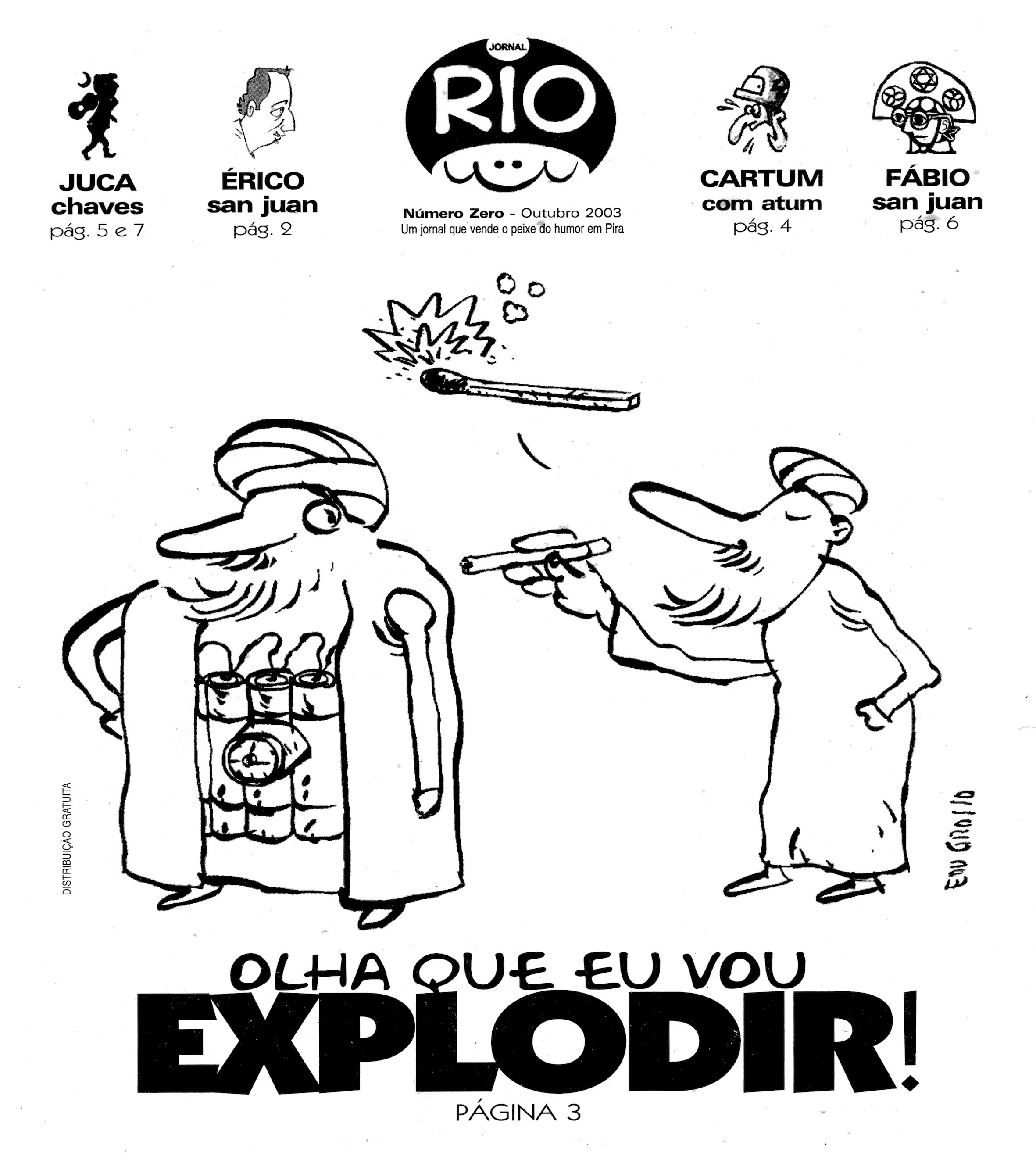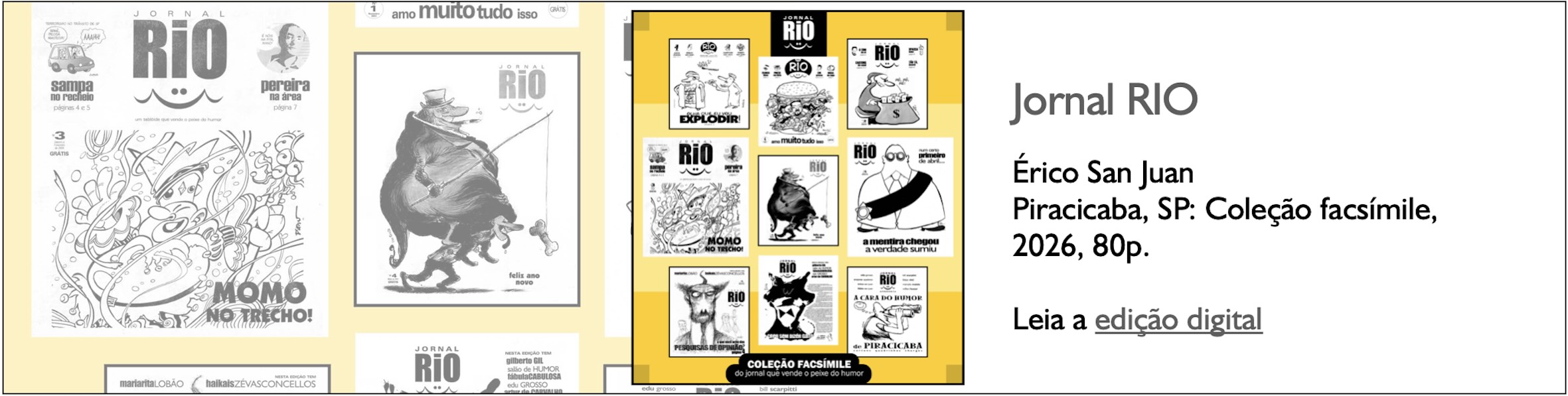 Desde os anos 1990, o cartunista, designer e radialista Érico San Juan contribui para o humor em suporte impresso na cidade. Uma de suas iniciativas foi a edição do jornal de humor Rio, com 9 números publicados entre 2003 e 2004. É esse material que retorna em coletânea fac-símile, tal como veio ao mundo, em parceria com a Marca de Fantasia.