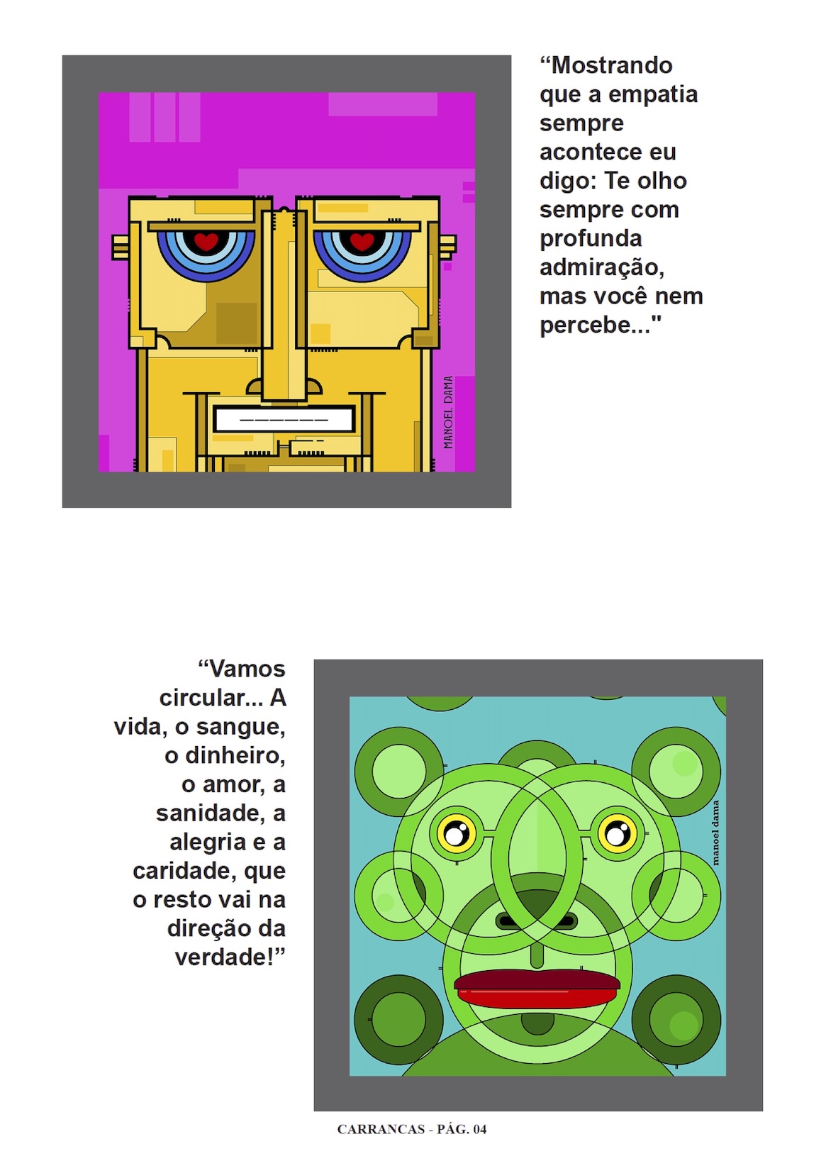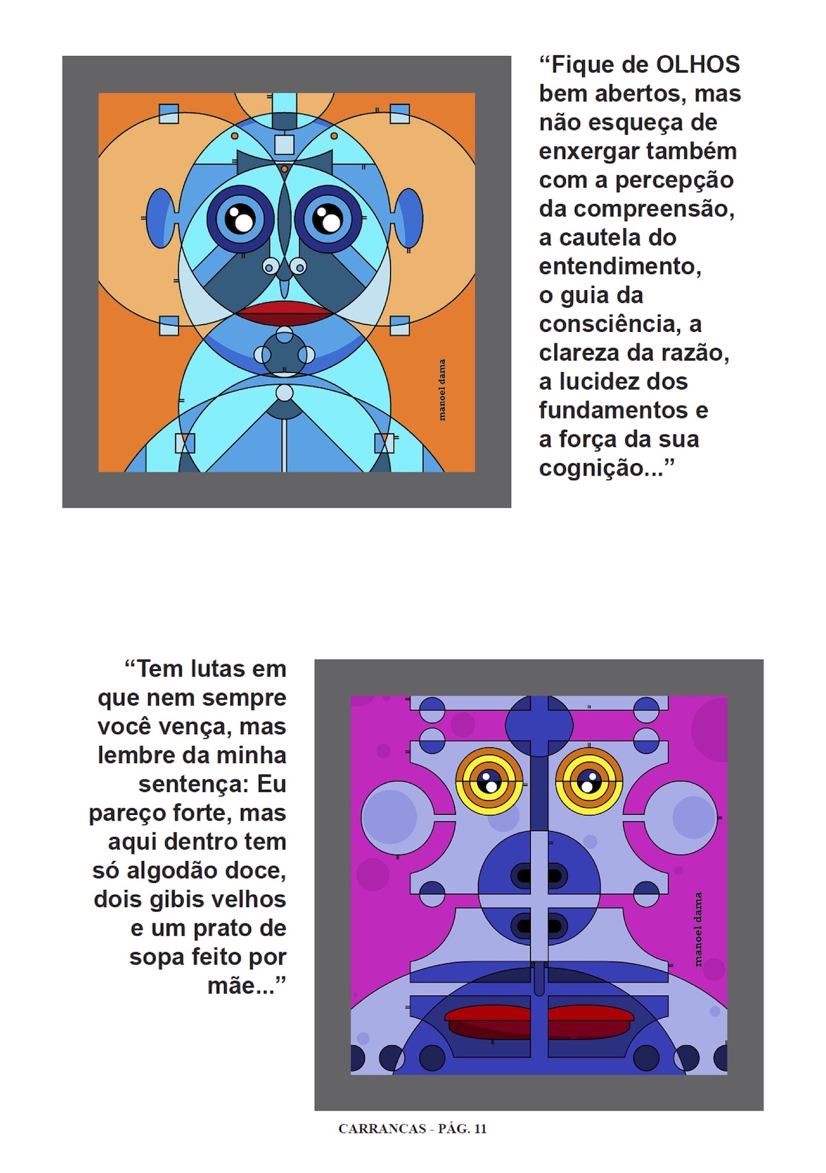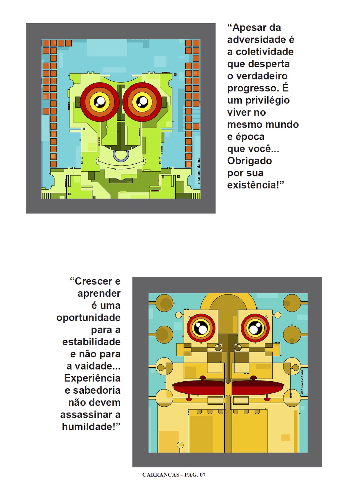 Páginas do álbum de figurinhas Carrancas digitais nada normais..., de Manoel Dama |