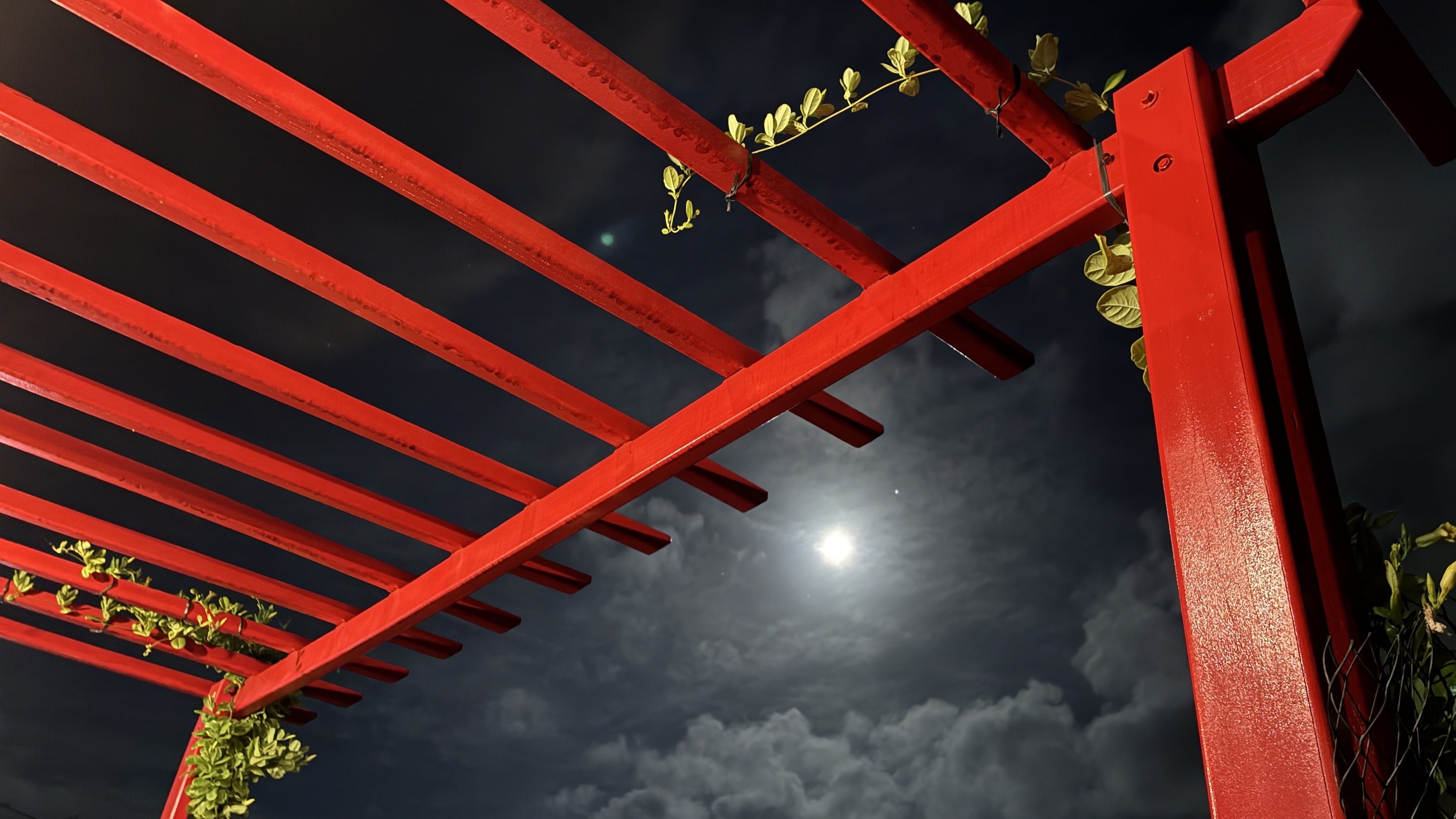 Aos poucos fomos transformando esse local abandonado - ou mal utilizado - em uma pequena praça: delimitamos a área com meio-fio, plantamos árvores, instalamos bancos, fizemos calçada com tijolinhos e construimos um belo pergolado de um vermelho fogo escandaloso, que serve de portal e mirante para o rio. Esse equipamento é também uma espécie de coreto, apropriado para confraternizações e palco para espetáculos.