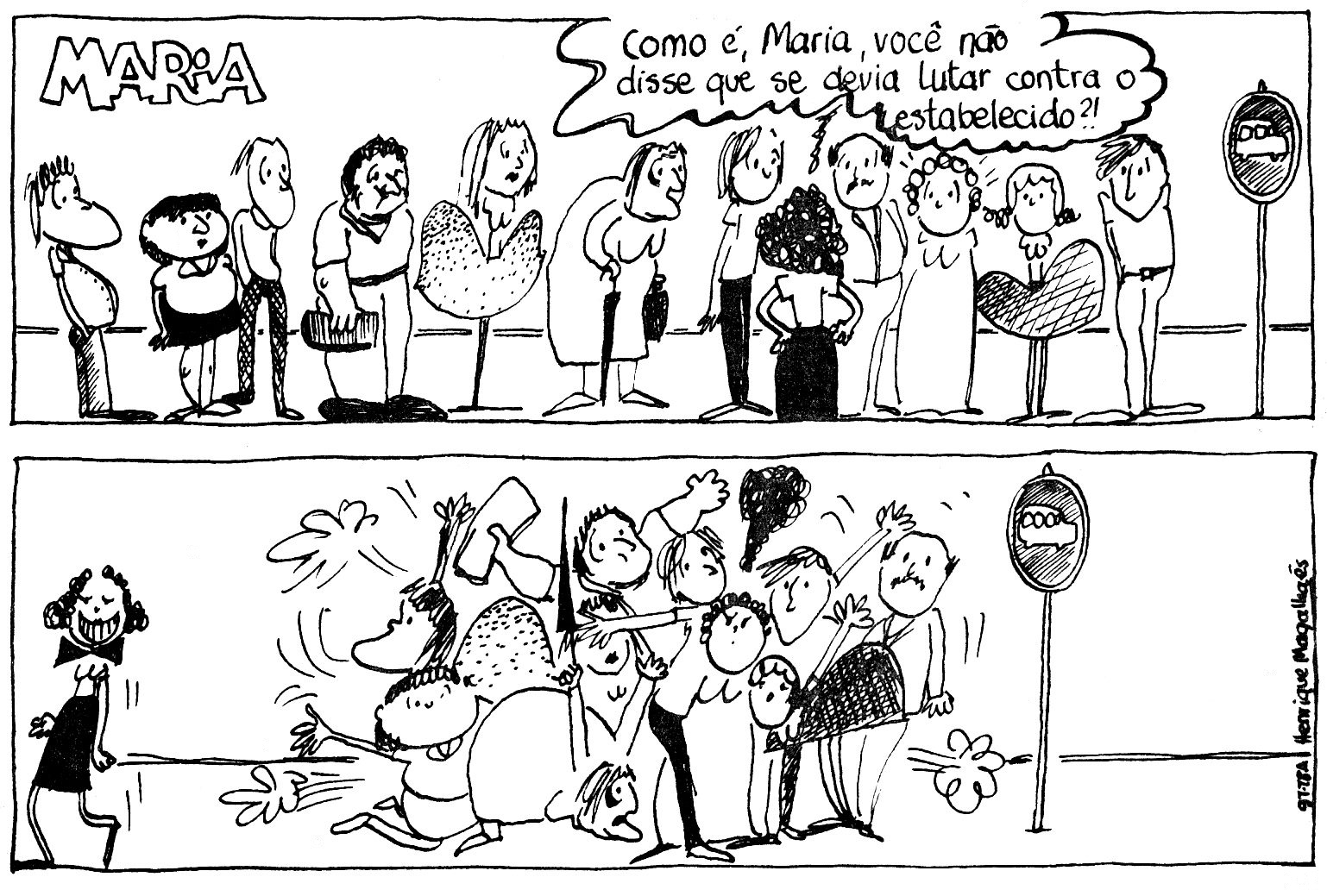 Nessa tira inspirada na música “Caçador de mim”, de Sérgio Magrão e Luís Carlos Sá, imortalizada na voz de Milton Nascimento, Maria chama para a luta em defesa da liberdade amorosa.