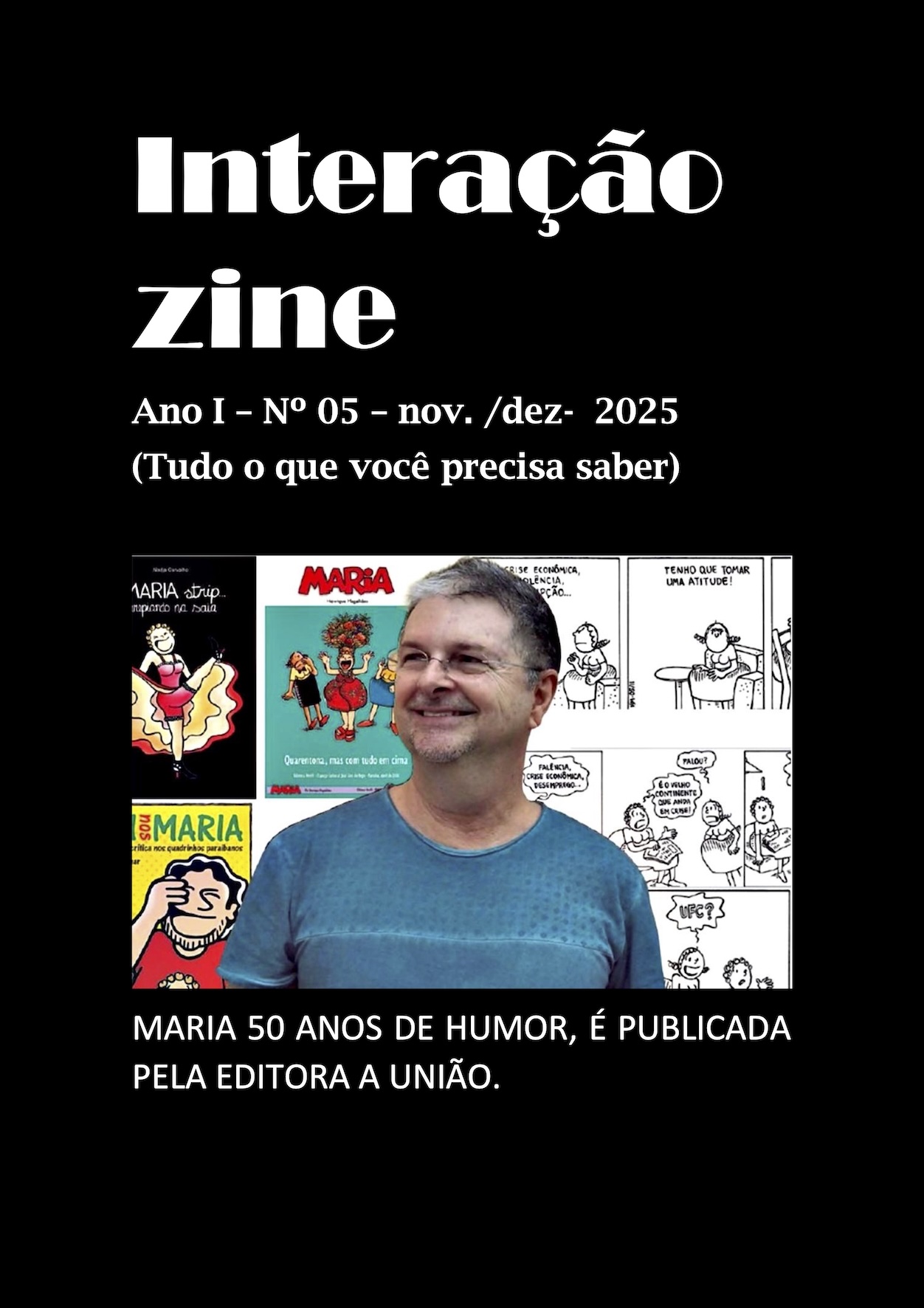 Mas não é sobre Nogueira que me debruço a falar, e sim sobre seu novo rebento, dentre tantos que lança com efusão: o Interação Zine n. 5, de novembro/dezembro de 2025. Este fanzine é um bom exemplo do que se fazia nos moldes dos antigos fanzines, com a diferença que não é impresso, mas em edição digital no formato pdf. É o velho tornando-se novo, ou o novo reverenciando o velho.