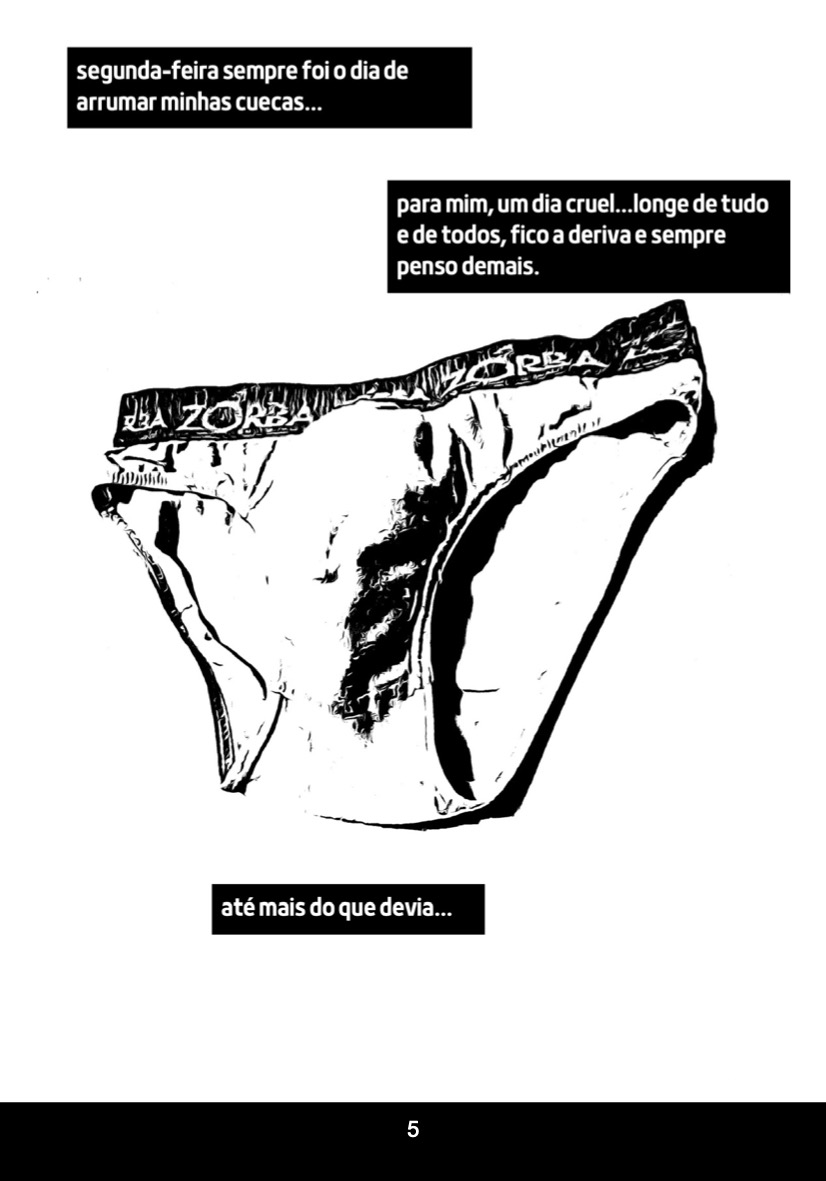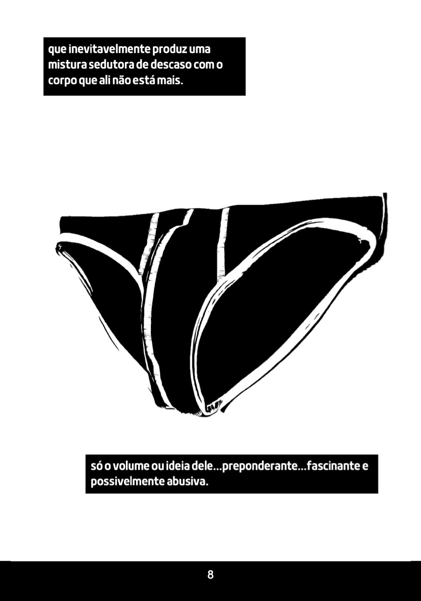 É disso que trata a quinta edição de Raio da Silibrina. Voltado à investigação ensaísta da vida cotidiana, a publicação traz uma inusitada mirada sobre as velhas e - sempre desprezadas - cuecas, numa alegoria ao oco que preenche a solidão humana. A edição conta com a parceria do editor, Henrique Magalhães - texto de apresentação e fotografias - com o quadrinista Daniel Figueiredo, que nos brinda com uma interpretação poética desse obscuro objeto de fetiche.
